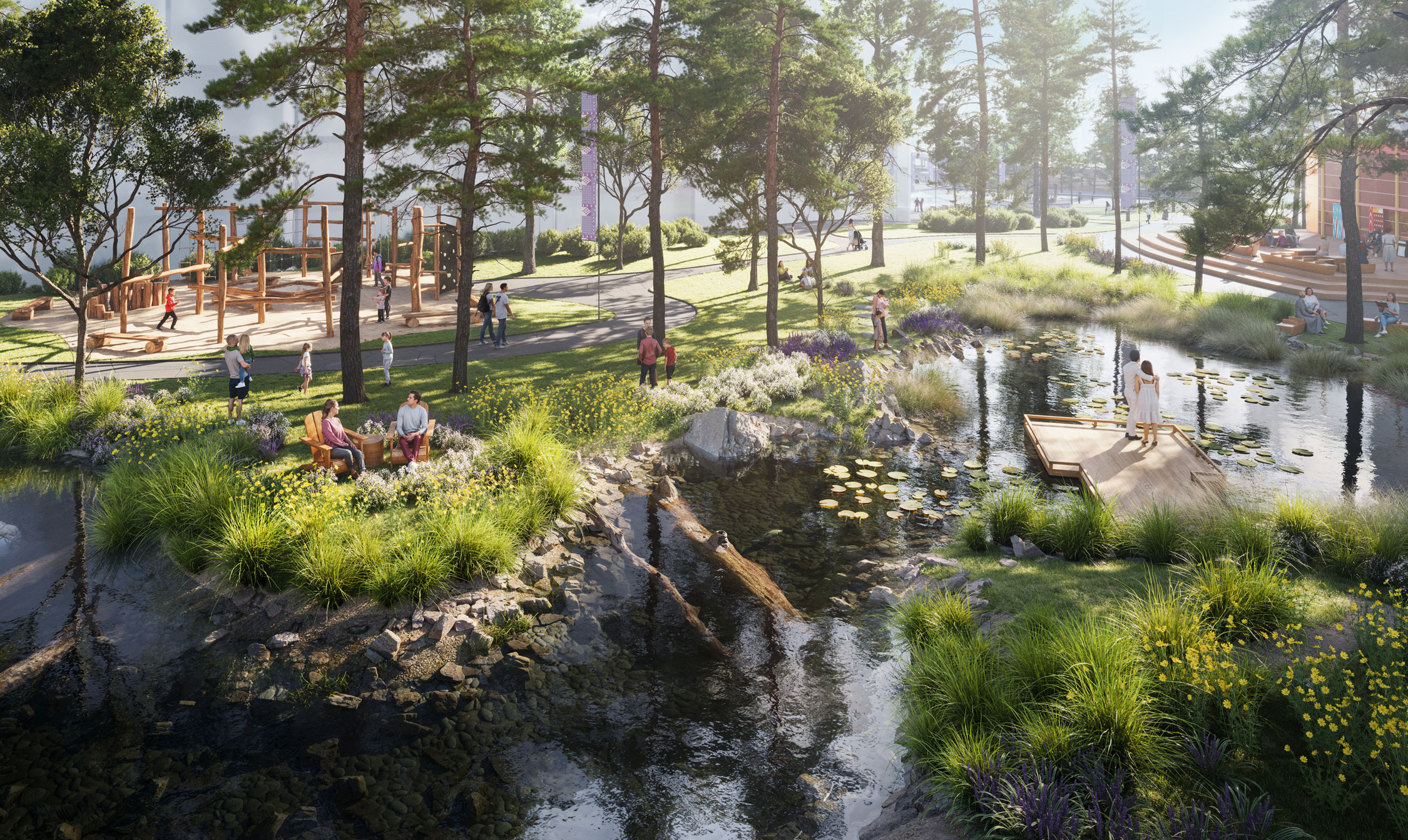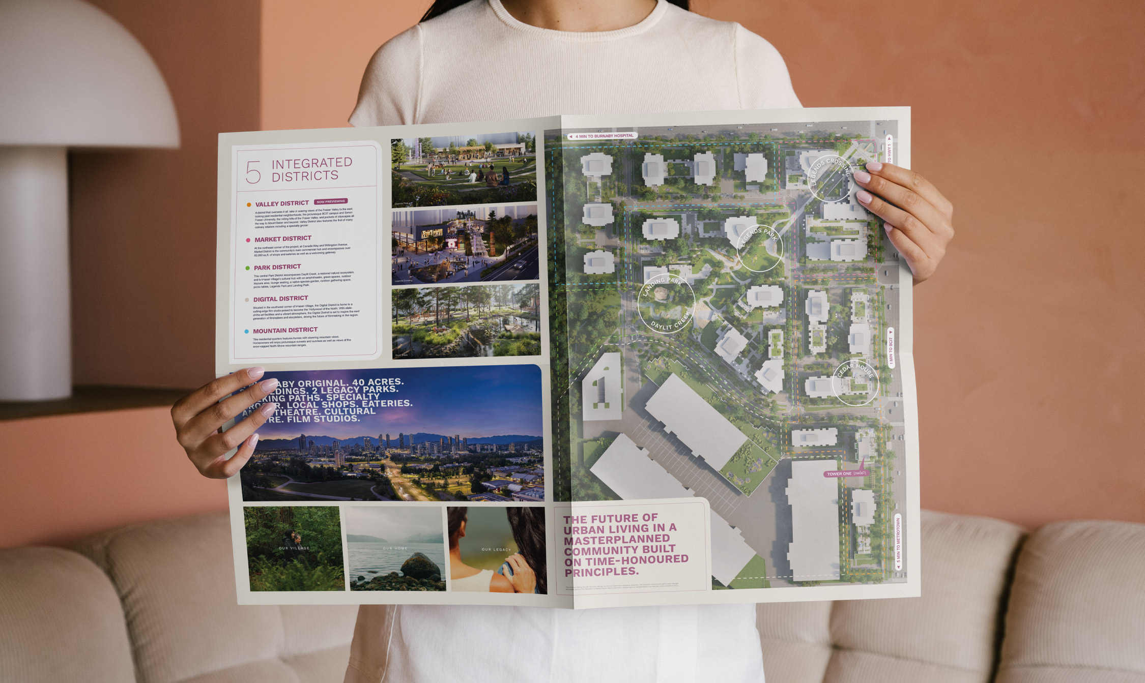 Kwasen Village is a fully imagined, harmoniously integrated 15-minute neighbourhood in Burnaby, British Columbia, where work, cultural diversity, higher education, and a network of transit options are always within precious minutes of home. Kwasen Village will feature the very best community amenities that blend into a lush landscape of storytelling parks, public art pathways, and purposeful green spaces.